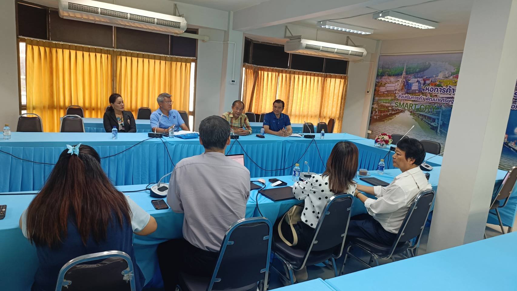 ทีมงานอาจารย์คณะวิศกรรมศาสตร์มหาวิทยาลัยหอการค้าไทย มาขอเข้าพบ ประธานหอการค้า และคณะกรรมการ เพื่อประชาสัมพันธ์จัดอบรมหลักสูตรระยะสั้น ให้แก่ผู้ประกอบการ ณ ห้องประชุมสำนักงานหอการค้าจังหวัดฉะเชิงเทรา