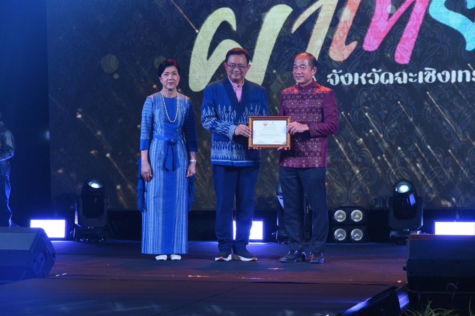 วันจันทร์ที่ 4 ธันวาคม 2566 เวลา 19.00 น. ดร.จิตรกร เผด็จศึก ประธานหอการค้า และ นางสาวศศิธร เผด็จศึก สมาชิกYEC Chachoengsao ผู้ประกอบการรุ่นใหม่ เดินแบบในนามหอการค้าจังหวัดฉะเชิงเทรา พร้อมด้วยหน่วยงาน/องค์กรต่างๆ ร่วมงานเดินแบบผ้าไทยการกุศล (ผ้าไทยใส่ให้สนุก) ณ บูธแม่บ้านมหาดไทยจังหวัดฉะเชิงเทรา ในงานนมัสการหลวงพ่อโสธร