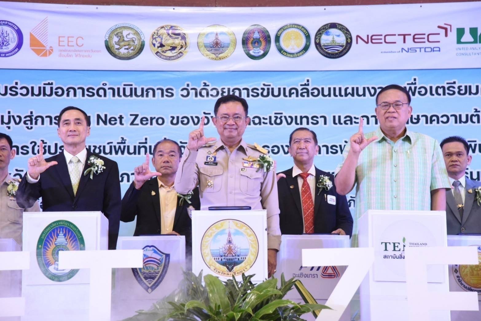 ดร.จิตรกร เผด็จศึก ประธานหอการค้าจังหวัดฉะเชิงเทรา ร่วมลงนามบันทึกข้อตกลงความร่วมมือการดำเนินการ ว่าด้วยการขับเคลื่อนแผนงานเพื่อเตรียมความพร้อมด้านการเปลี่ยนแปลงสภาพภูมิอากาศมุ่งสู่การเป็น Net Zero ของจังหวัดฉะเชิงเทรา และการศึกษาความต้องการในการพัฒนาศักยภาพกำลังคนสำหรับทุกภาคส่วน และการใช้ประโยชน์พื้นที่เพื่อจัด Zoning รองรับการพัฒนาเขตพัฒนาพิเศษภาคตะวันออก (EEC) ระหว่างจังหวัดฉะเชิงเทรา ภาคีความร่วมมือ และมหาวิทยาลัยราชภัฏราชนครินทร์ เมื่อวันจันทร์ที่ 8 มกราคม พ.ศ. 2567 เวลา 8.00 – 15.30 น. ณ ห้องประชุม ชั้น 5 อาคารราชนครินทร์ มหาวิทยาลัยราชภัฏราชนครินทร์ อำเภอเมือง จังหวัดฉะเชิงเทรา โดย นายชลธี ยังตรง ผู้ว่าราชการจังหวัดฉะเชิงเทรา เป็นประธาน