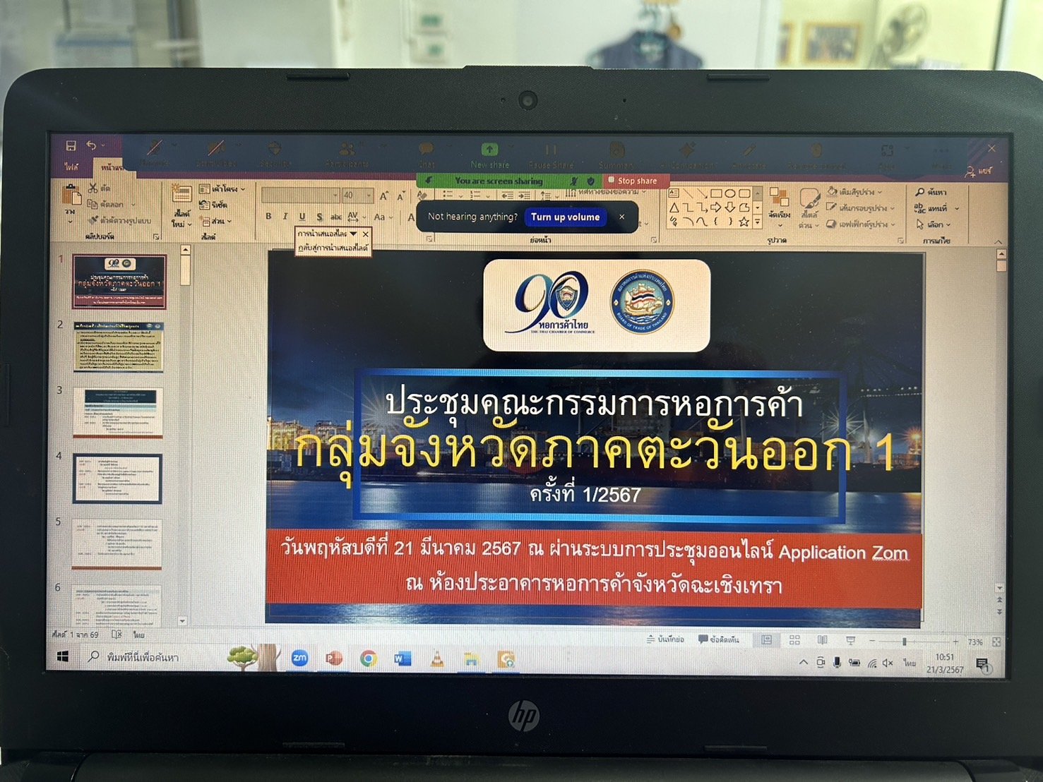 ดร.จิตรกร เผด็จศึก ประชุม คณะกรรมการหอการค้ากลุ่มจังหวัดภาคตะวันออก 1 หอการค้าไทย เป็นประธานประชุมคณะกรรมการฯ ครั้งที่ 1/2567 ในวันพฤหัสบดีที่ 21 มีนาคม 2567 เวลา 09.30 น.-12.00 น. ผ่านระบบการประชุมออนไลน์ Application Zoom เพื่อหารือแนวทางการขับเคลื่อนการทำงานในกลุ่มจังหวัดภาคตะวันออก 1 (ฉะเชิงเทรา ชลบุรี ระยอง) ในการเสริมสร้างองค์กรหอการค้ากลุ่มจังหวัดภาคตะวันออก 1 ให้เกิดความเข้มแข็งต่อไป