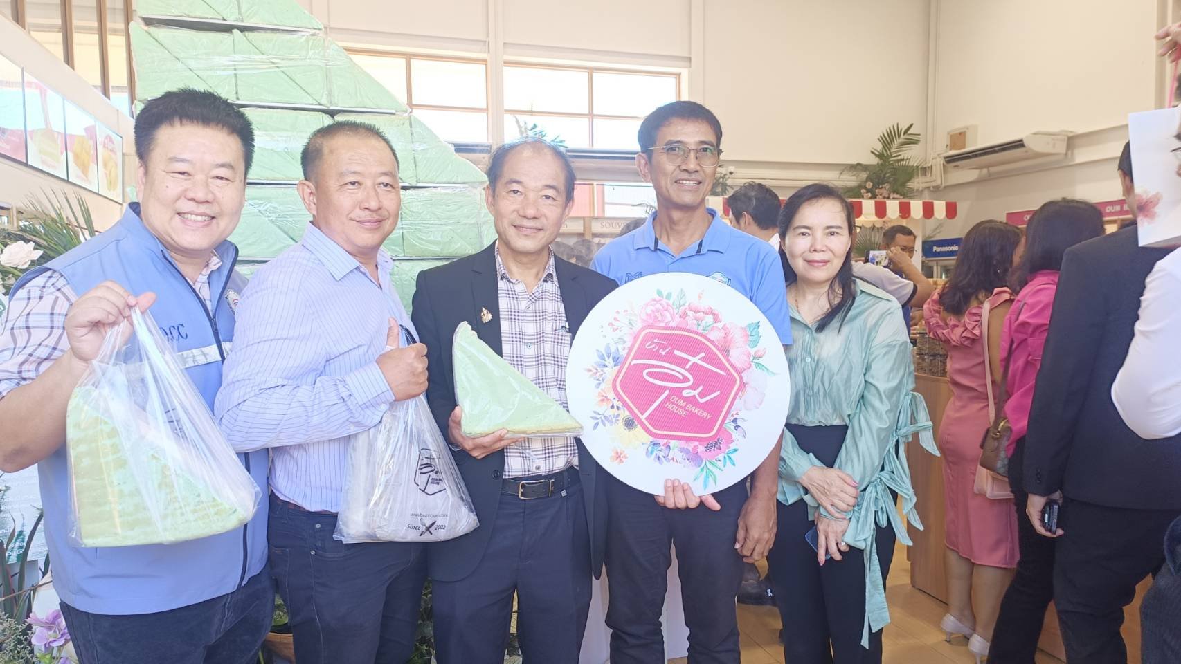 นายจิตรกรเผด็จศึกประธาน และคณะกรรมการหอการค้าฯ ร่วมเป็นเกียรติในพิธีเปิดร้าน "ขนมบ้านอุ๋มสาขาบ้านอุ๋มแลนด์“