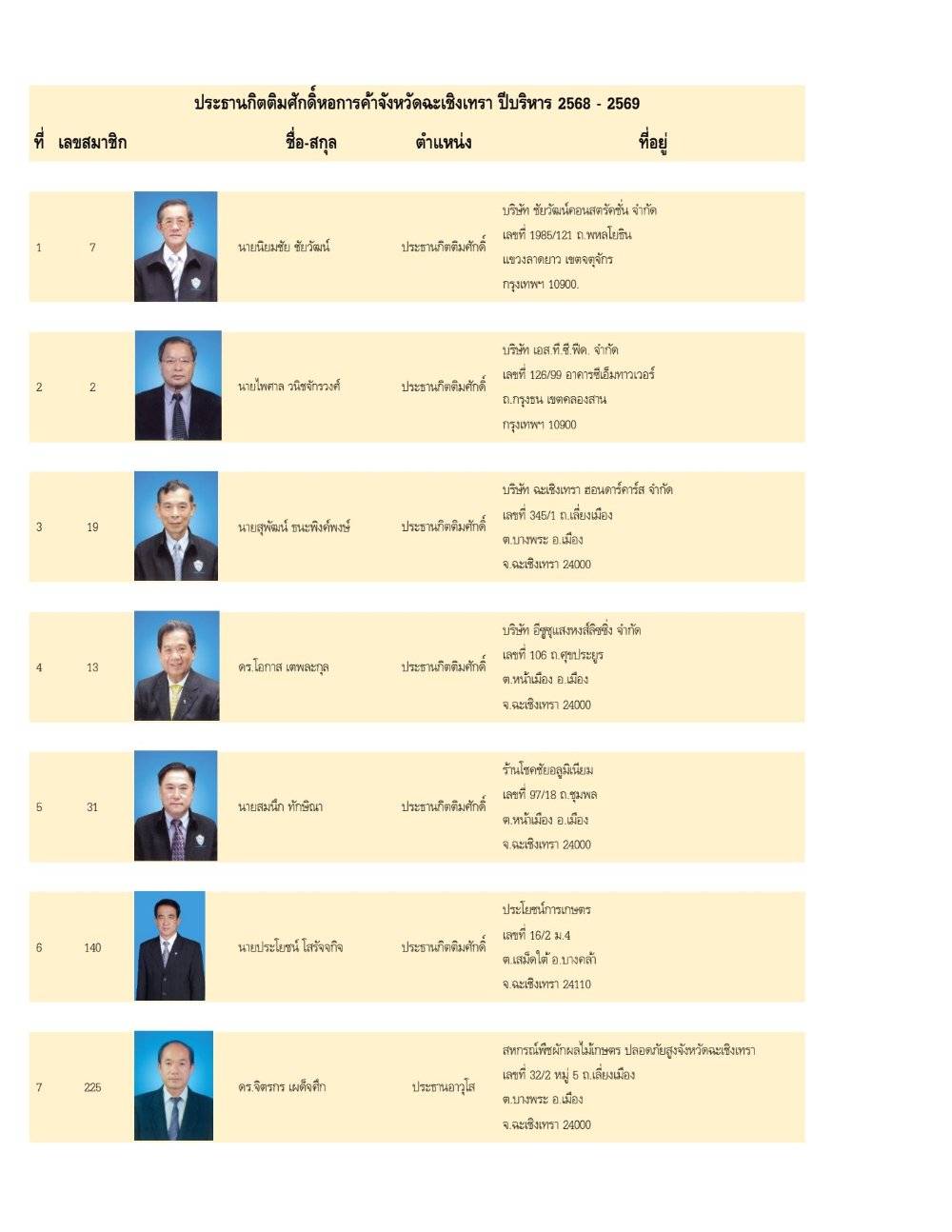 ประธานกิตติมศักดิ์หอการค้าจังหวัดฉะเชิงเทรา ปีบริหาร 2568 - 2569
