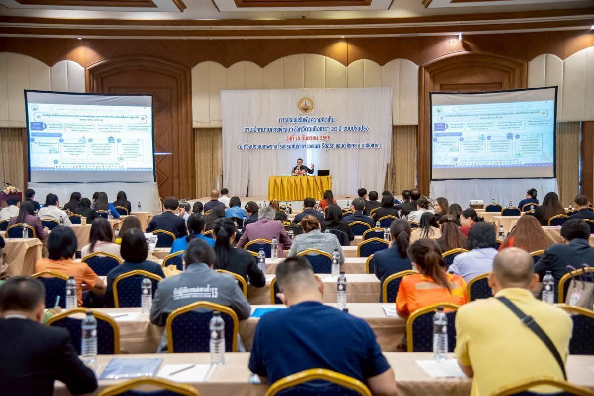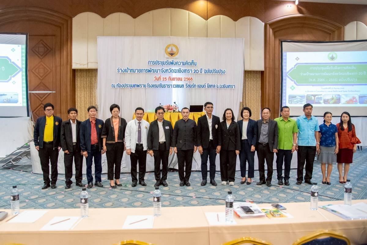 วันพฤหัสบดีที่ 25 กันยายน 2568 เวลา 13.30 น. นายยุทธนา มาตเจือ ประธานหอการค้า ร่วมประชุมเพื่อรับฟังความคิดเห็นร่างเป้าหมายการพัฒนาจังหวัดฉะเชิงเทรา 20 ปี ฉบับปรับปรุง ซึ่งมี นายสันติ รังษิรุจิ (ผู้ว่าราชการจังหวัดฉะเชิงเทรา) เป็นประธาน จัดโดย สำนักงานจังหวัดฉะเชิงเทรา ณ ห้องเทพราช โรงแรมซันธารา เวลเนส รีสอร์ท แอนด์ โฮเทล จังหวัดฉะเชิงเทรา