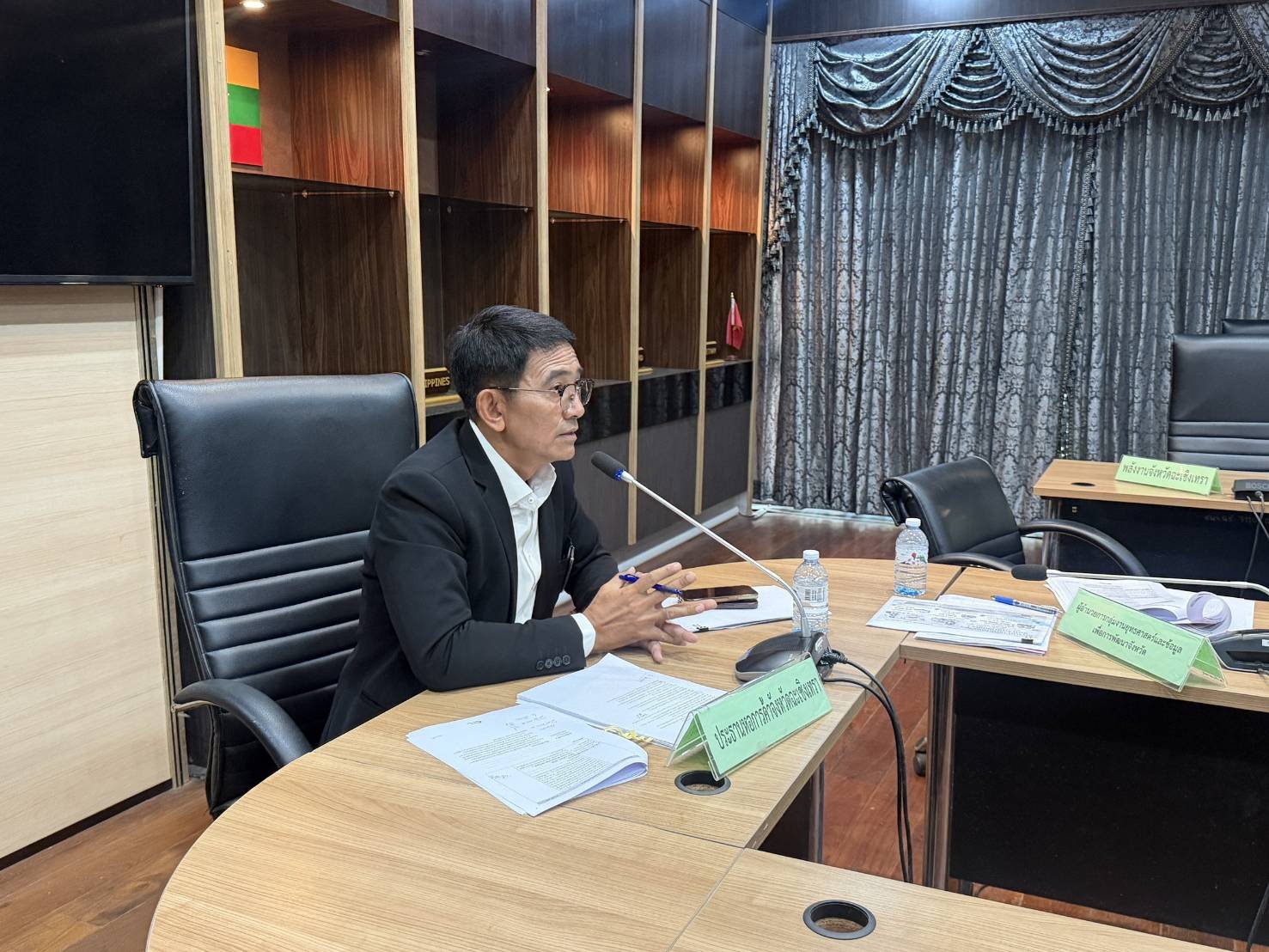 โดยใช้วิธีการประชุมผ่านระบบสื่ออิเล็กทรอนิกส์ร่วมด้วยโปรแกรม weback meeting number 2510 7952662 และ meeting password 12345